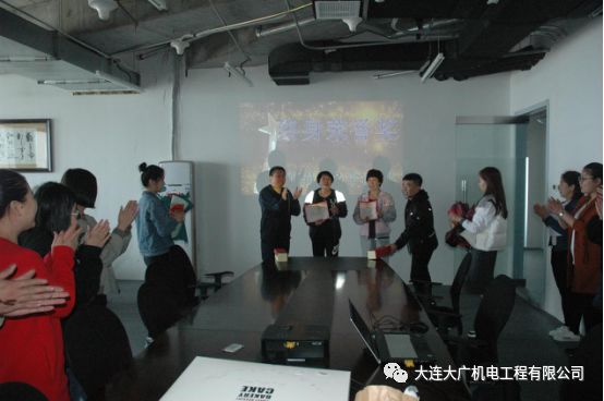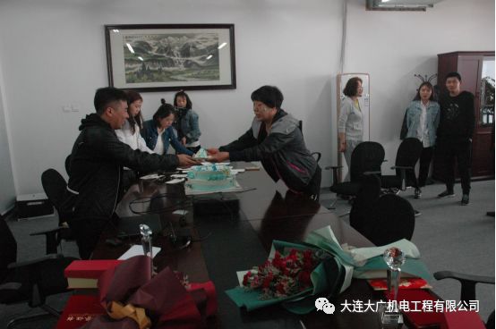 算下來(lái)孫姐在職十幾年之久,李姐也在職五年多。大連大廣機(jī)電工程有限公司永遠(yuǎn)記得并感每一名為公司傾心付出的成員,特由大連大廣機(jī)電工程有限公司總經(jīng)理朱國(guó)際先生和副總經(jīng)理朱國(guó)慶先生分別給孫姐與李姐頒發(fā)“終身榮譽(yù)獎(jiǎng)”獎(jiǎng)狀、獎(jiǎng)杯、獎(jiǎng)金,并獻(xiàn)上鮮花。